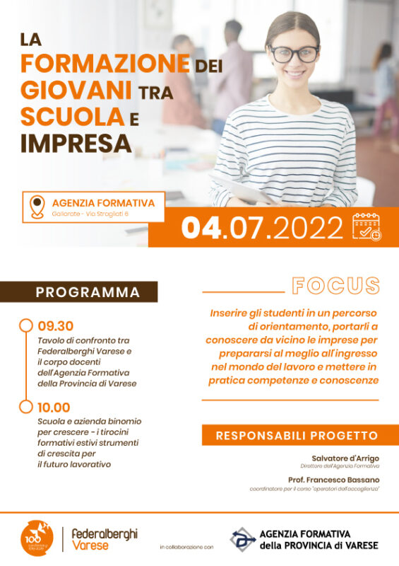 Per questo primo evento saranno ospiti, oltre ai referenti delle strutture aderenti all’iniziativa, anche i principali dirigenti di Federalberghi Varese che apriranno l’incontro con un momento di confronto con ragazzi e docenti rispetto al tema del tirocinio formativo estivo.